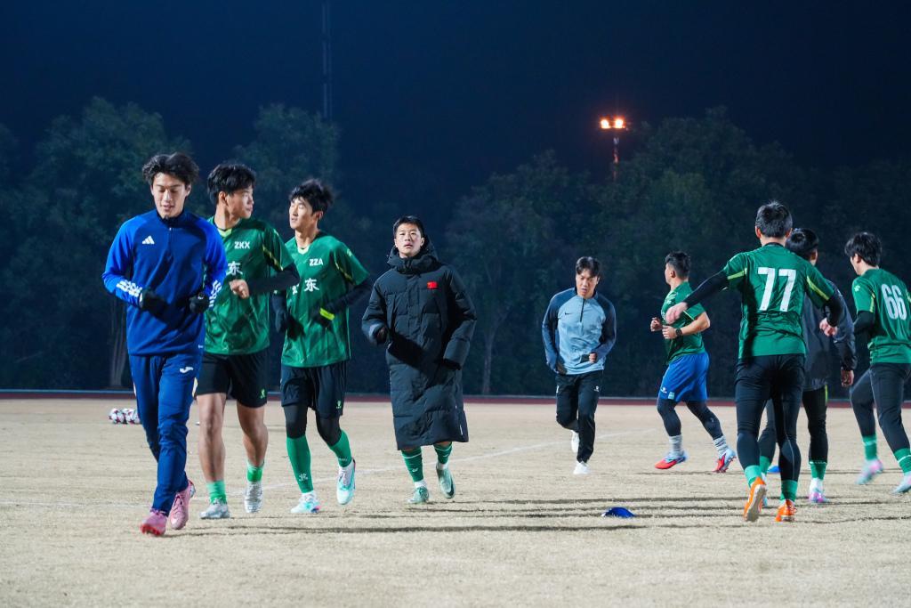 距离“金超”足球超级联赛揭幕,仅剩不到一周的时间,战鼓已然擂响!1月12日晚,在金华一中足球训练场上已是一派热火朝天的景象,教练带着球员们开展热身、基础技能、战术演练等训练,金东战队的球员们正以昂扬姿态投入赛前冲刺训练。作者:王毅琳